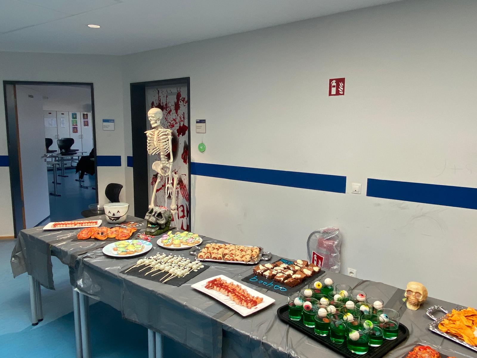 Gemeinsam mit Frau Tischner bereiteten die Schülerinnen und Schüler bereits am Vortag schaurig-leckere Speisen für ein abwechslungsreiches und liebevoll dekoriertes Buffet vor.