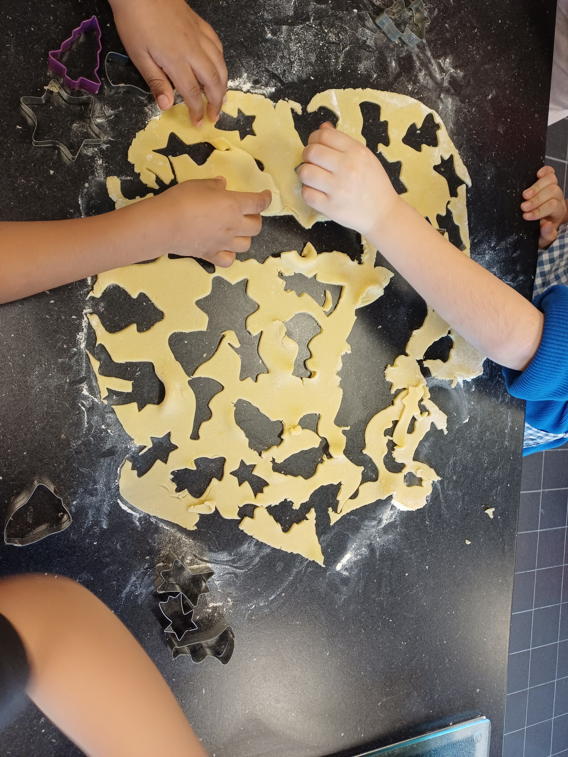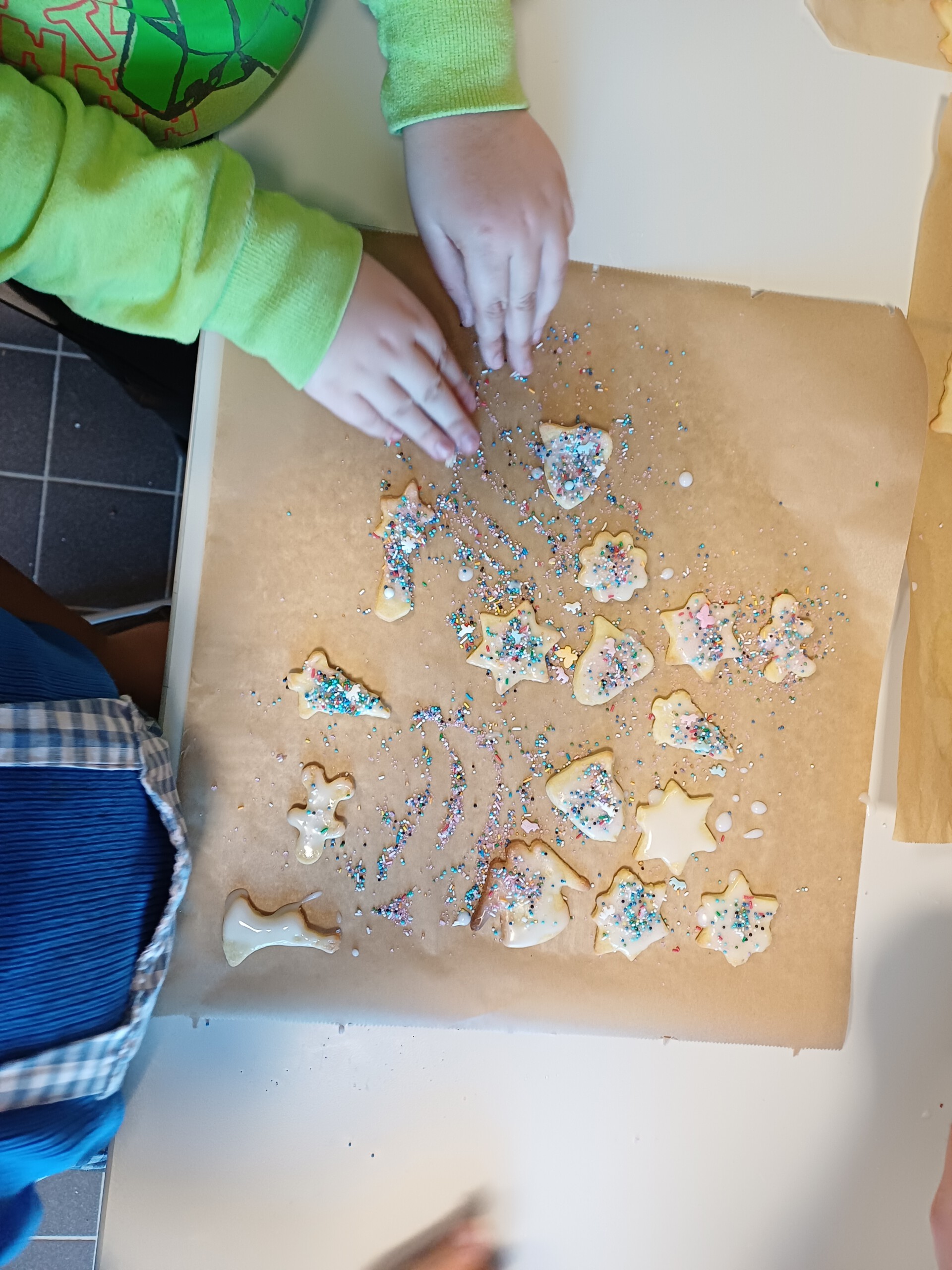 Heute durften wir wieder mit den WG-Lehrerinnen Plätzchen backen. Den Teig hatten uns netterweise die 9.Klässler schon vorbereitet, so konnten wir direkt mit Ausstechen und Verzieren loslegen. Ein Riesenspaß für alle Kinder. Unsere Plätzchen sind so lecker und schön bunt geworden. Mmh!